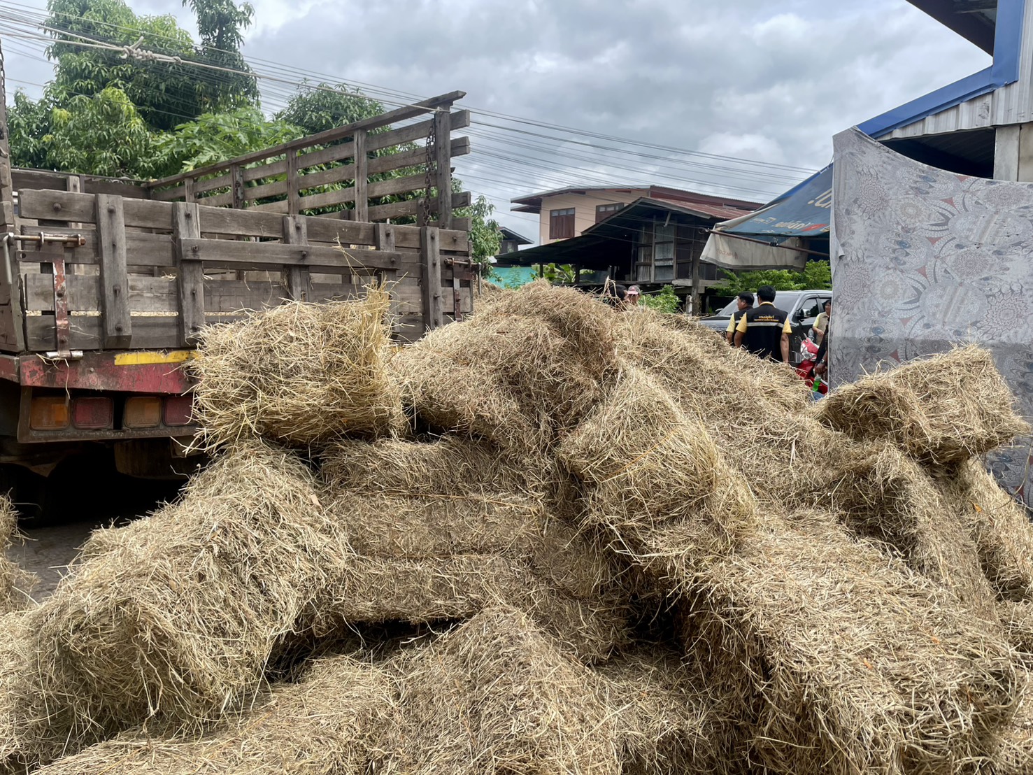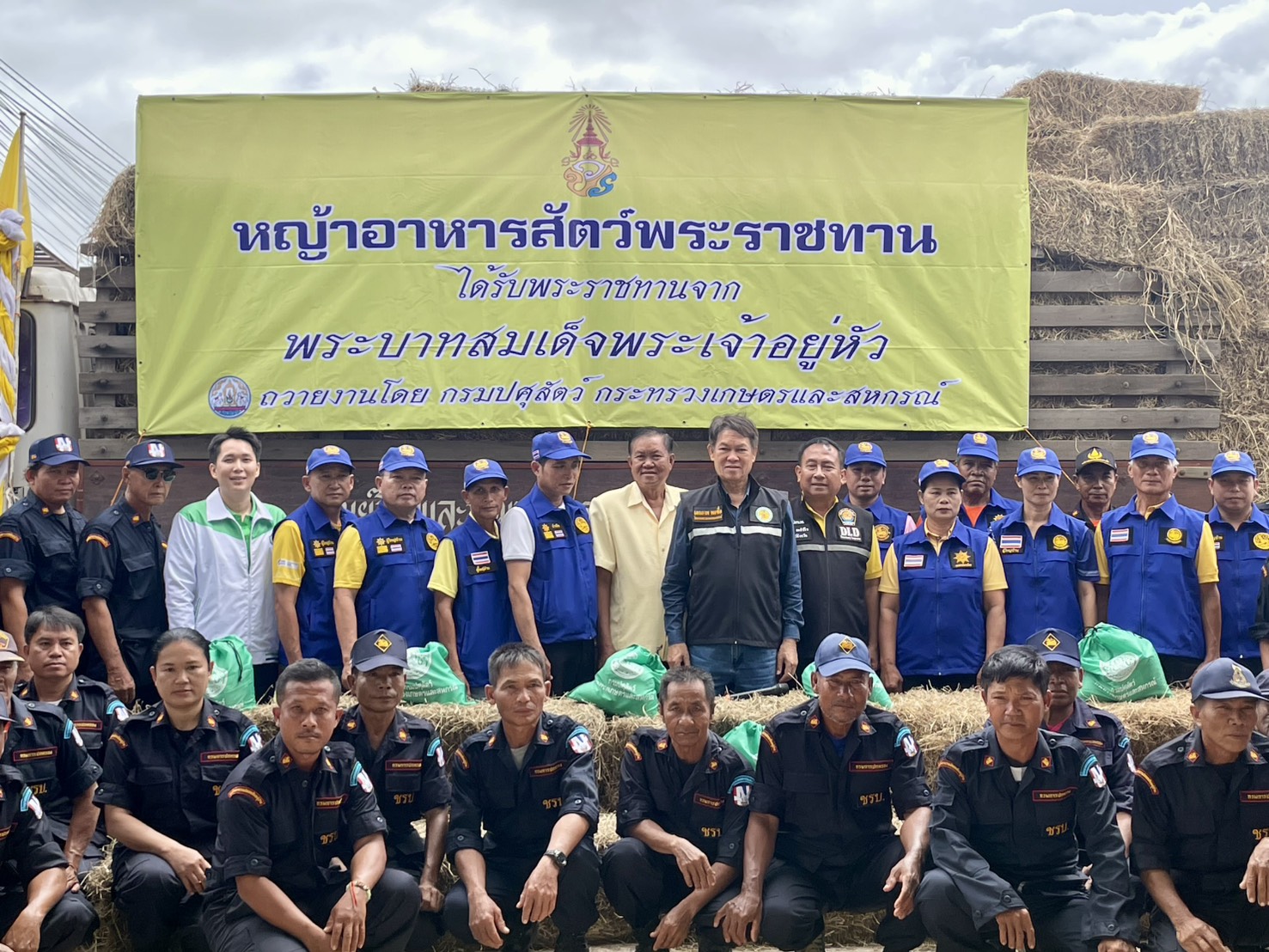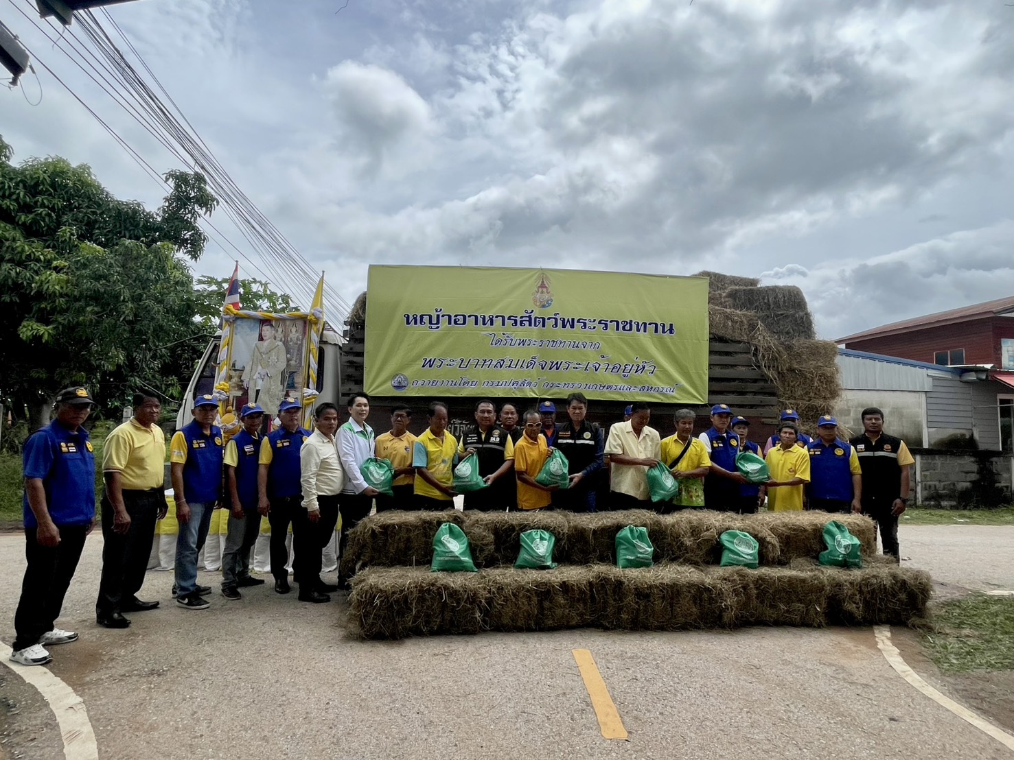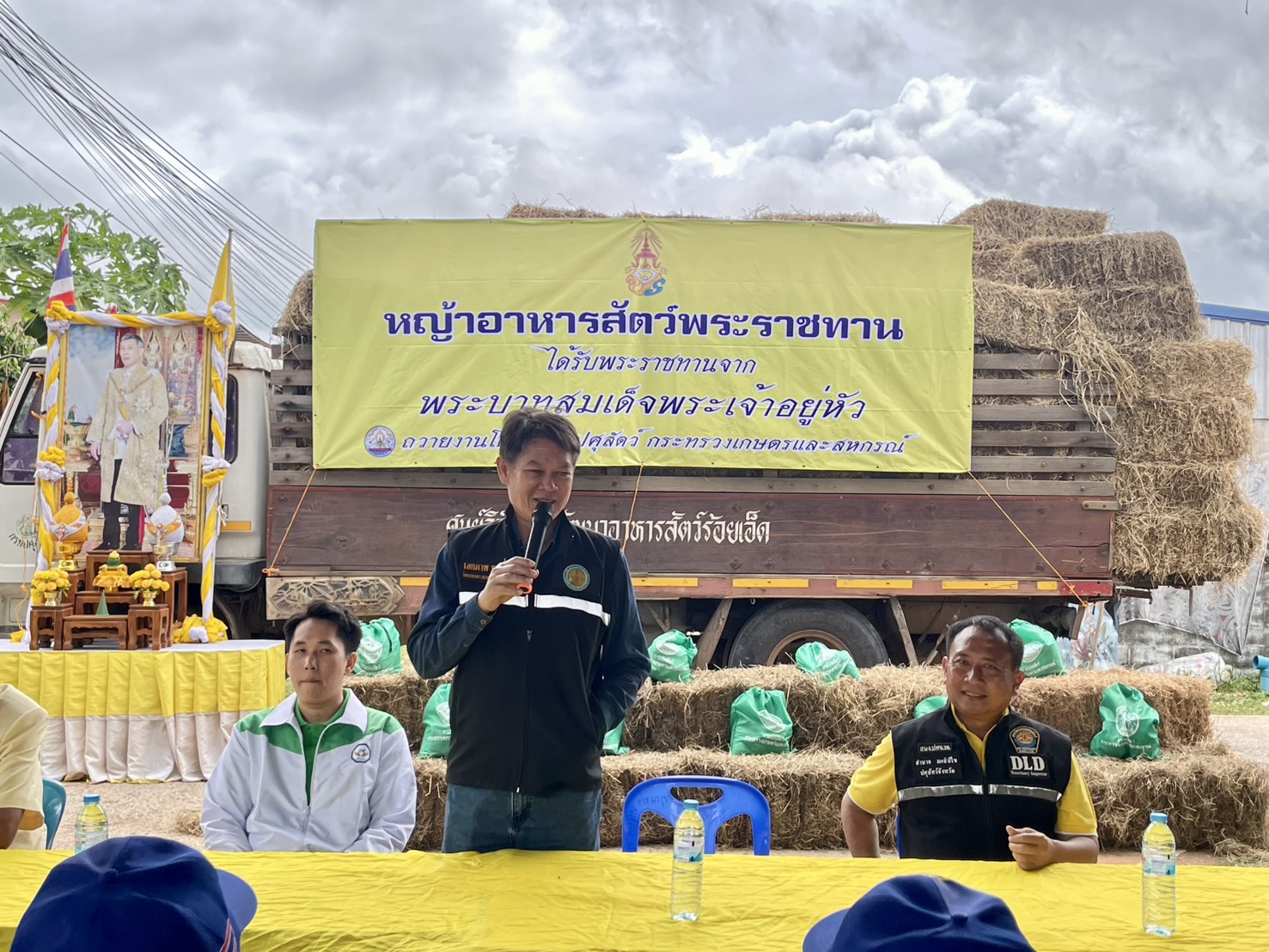 วันที่ 30 กันยายน 2568 ดร.เอกภาพ พลซื่อ โฆษกกระทรวงเกษตรและสหกรณ์ พร้อมด้วยนายอำนาจ มะธิปิไข ปศุสัตว์จังหวัดร้อยเอ็ด ศูนย์วิจัยและพัฒนาอาหารสัตว์ร้อยเอ็ด กลุ่มยุทธศาสตร์และสารสนเทศการปศุสัตว์ และสำนักงานปศุสัตว์อำเภอโพธิ์ชัย มอบหญ้าอาหารสัตว์พระราชทานให้กับเกษตรกรผู้เลี้ยงสัตว์ ในพื้นที่หมู่ 3 ตำบลดอนโอง อำเภอโพธิ์ชัย จังหวัดร้อยเอ็ด เพื่อให้ความช่วยเหลือเกษตรกรผู้เลี้ยงสัตว์ที่ประสบปัญหาอุทกภัยลำน้ำชีเอ่อล้นตลิ่งเข้าท่วมพื้นที่การเกษตรและพื้นที่เลี้ยงสัตว์ โดยได้มอบเสบียงอาหารสัตว์พระราชทาน เป็นหญ้าแห้งอัดฟ่อน จำนวน 200 ฟ่อน และถุงยังชีพสำหรับสัตว์ จำนวน 20 ชุด ซึ่งมีเกษตรกรได้รับผลกระทบด้านปศุสัตว์ เกษตรกรจำนวน 16 ราย โคและกระบือจำนวน 51 ตัว