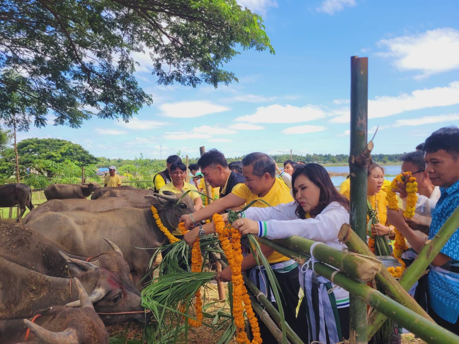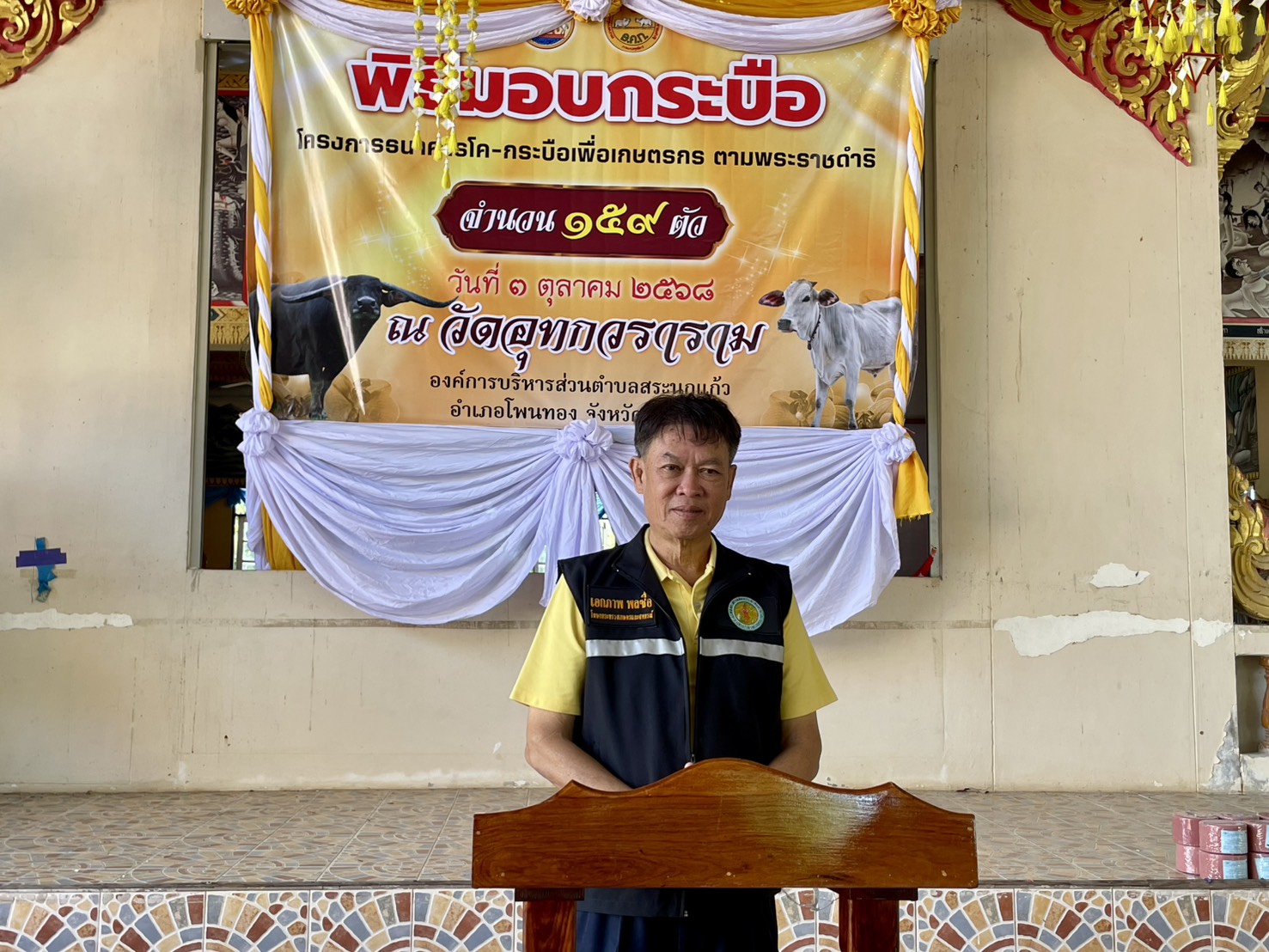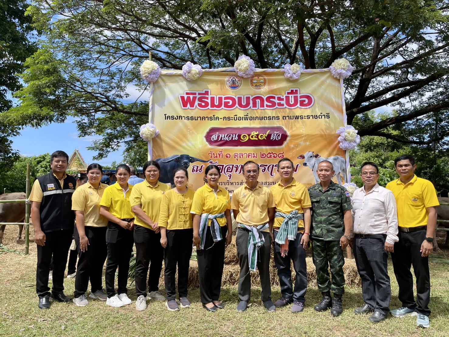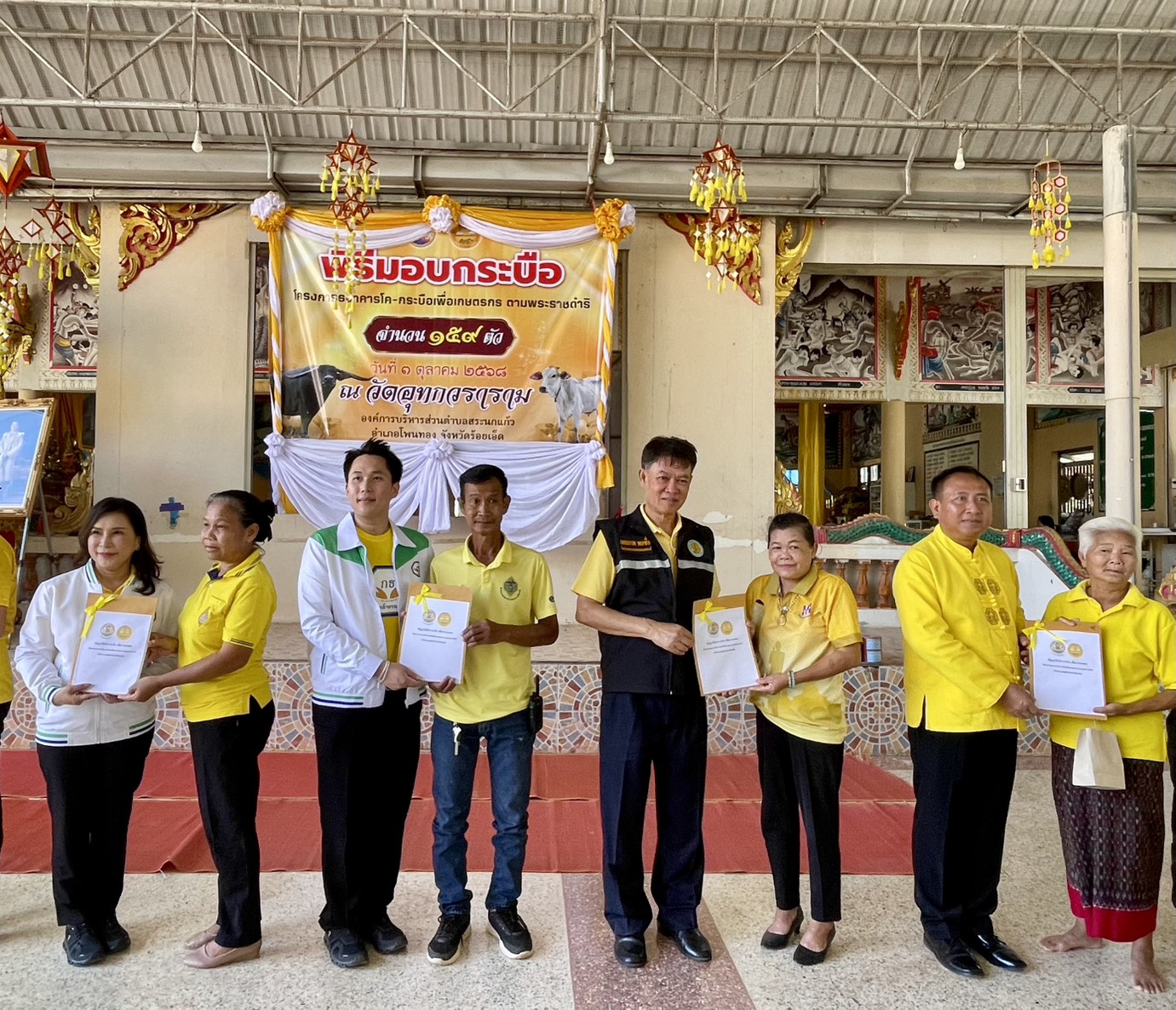 วันที่ 3 ตุลาคม 2568 นายอำนาจ มะธิปิไข ปศุสัตว์จังหวัดร้อยเอ็ด พร้อมด้วย นายอิทธิพัทธ์ จำรัสบุญหิรัญ ผู้อำนวยการส่วนส่งเสริมและพัฒนาการปศุสัตว์แทนปศุสัตว์เขต 4 กลุ่มส่งเสริมและพัฒนาการปศุสัตว์สำนักงานปศุสัตว์อำเภอโพนทอง ร่วมจัดพิธีมอบกระบือโครงการธนาคารโค-กระบือเพื่อเกษตรกร ตามพระราชดำริ โคและกระบือทั้งหมดจำนวน 159 ตัว มอบเวชภัณฑ์จำนวน 159 ชุด โดยมี ดร.เอกภาพ พลซื่อ โฆษกกระทรวงเกษตรและสหกรณ์ เป็นประธานในพิธี มีหน่วยงานสังกัดกระทรวงเกษตรและสหกรณ์เข้าร่วมพิธีฯ ณ วัดอุทกวราราม ตำบลสระนกแก้ว อำเภอโพนทอง จังหวัดร้อยเอ็ด